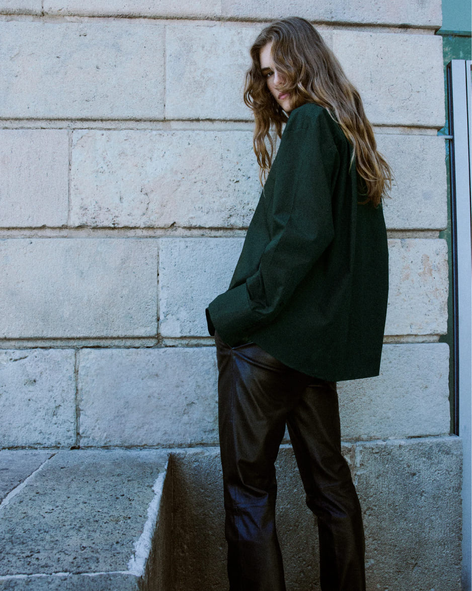 Crafted from cotton poplin fabric, this garment features an oversized design with a shirt collar.